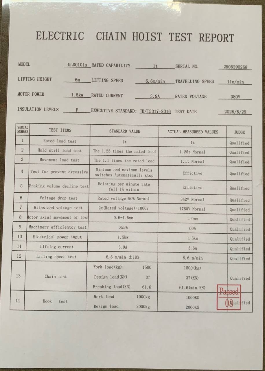 380V 3P 1T0N (6Mx7.1MMx1) MOTOR 1.5KW 76% 6.6M/MIN 57KG